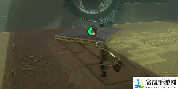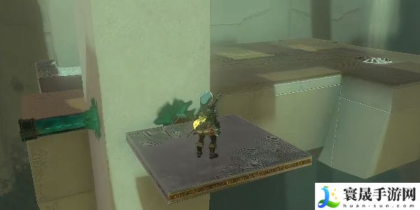 1、进入兹兹乌每神庙后一直往前奏,可以看到平台边缘处的道具,使用究极手将它和左侧的升降石柱组合。