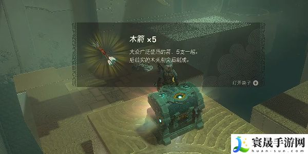 3、利用向上气浪来到高处,可以在下图位置看到一个宝箱,打开后可以获得【木箭*5】。