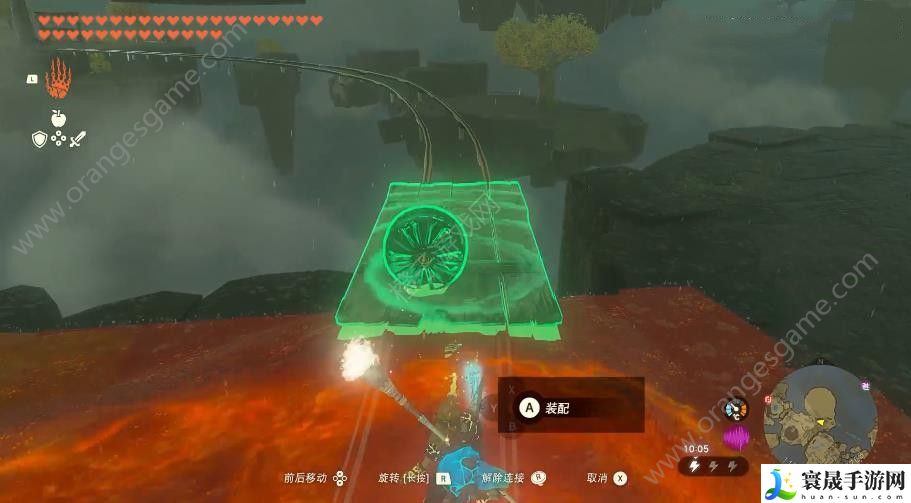 塞尔达传说王国之泪乔克乌希尼神庙在费罗尼空域,开局我们需要将自己定位在龙头岛,然后拿起地上的风扇放在右边的木板上面安置好,接下来我们要完成一系列的轨道安装,下面