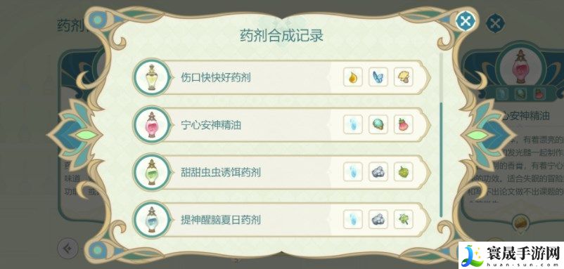 因获取材料途径有限,下面是目前我解锁的药剂配方