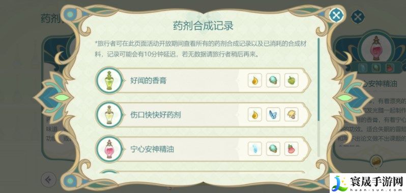 原神熠金妙剂配方材料: