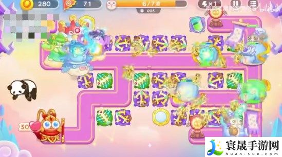 1、开局在右侧的那个空白位置放船锚炮,先清理旁边的道具,清完放船锚炮,左侧的锁定上方的栏杆,右侧的清理兔子,粉兔来了要锁头,上方栏杆清完也要放船锚炮;