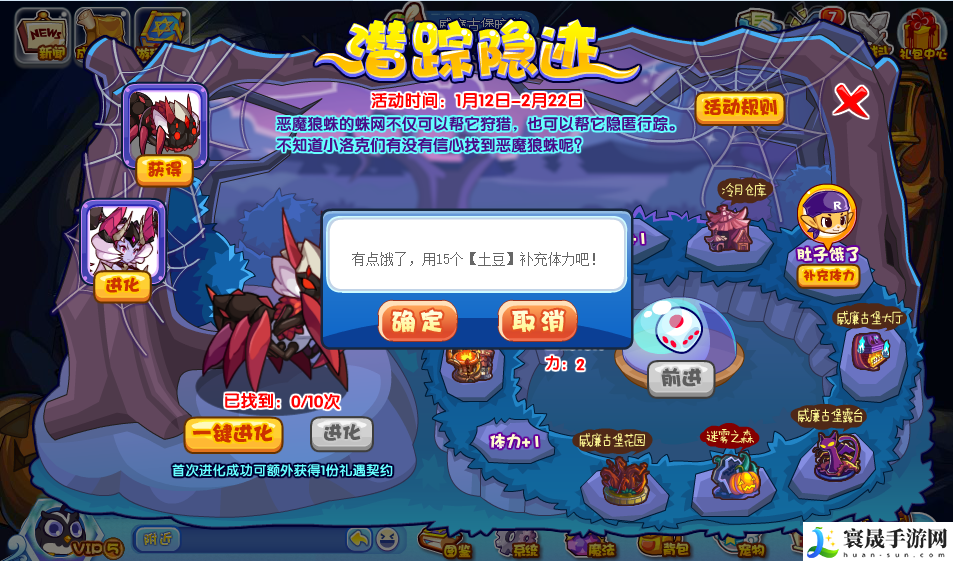 累计找到10次就可以开启:恶魔狼蛛 的进化资格!