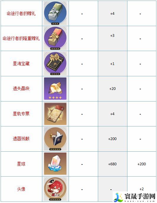 4个限定票,680石头,一个自选四星光锥(武器),大量材料