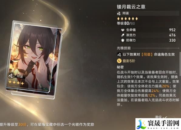 精1/5提供10/20%的攻击力或12/24%的暴击伤害或6/12%的能量恢复效率,虽然看着数值比较低,但这个光锥提供的是全队buff,虽说有不确定性,但基本上每个效果都有作用(对全队来说),即使是充能也能为队伍DPR(平均轮次输出)提供加成