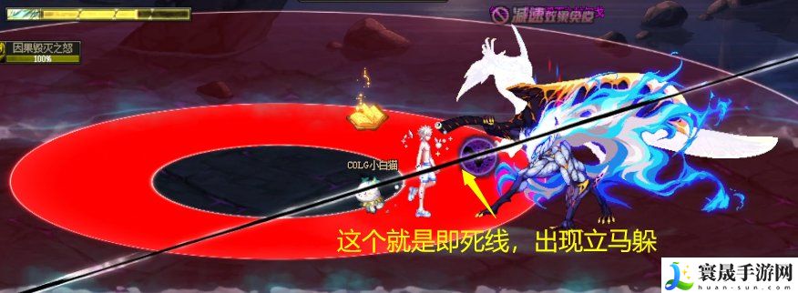 需要在读条结束后,向外跳跃躲避缩小的圈,与其同时也记得躲避线形斩。