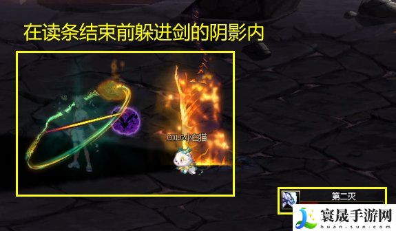随后Boss读条【第一灭/第二灭】并释放线形斩,需要在读条结束前躲在剑背后的阴影处,该机制也重复2次。