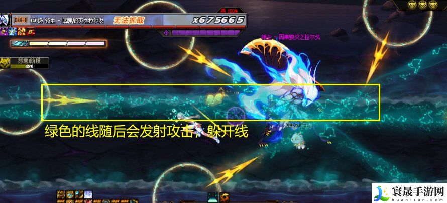 Boss召唤大量黄圈,黄圈随后会对绿色光线方向射击,与其同时还会有环形斩
