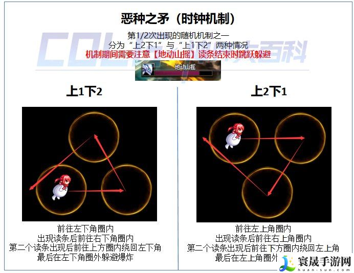 Boss生成3个圈,俗称为“时钟”,分为上1下2/上2下1两种情况(机制期间每个读条结束都需要跳跃躲避,不再重复提醒)