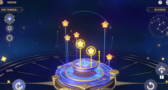 2、当某个「聚画星盘」的角度和高度都处在一个恰当的位置时,「聚画星盘」上的「聚画之星」会亮起。当所有「聚画之星」都亮起时,即为完成此图案;