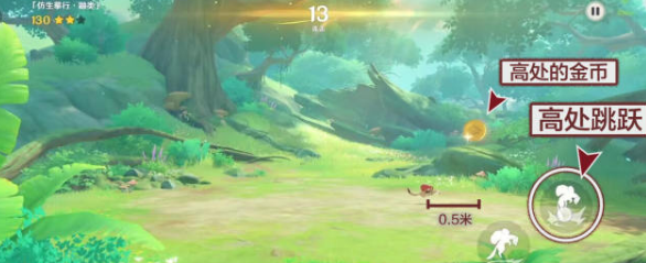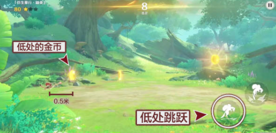 1、在合适的时机使用「跳跃」,让融类模型在合适的节奏点上搜获到金币,若「游乐币」位置较高,则需要使用「高跃」,旅行者指挥可爱的小鼬鼠拾取金币;