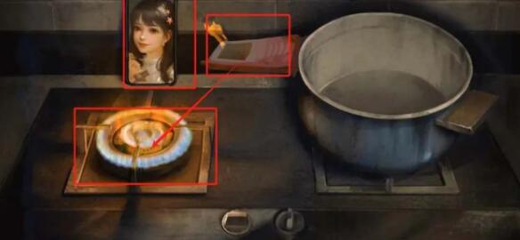 4、之后去放置物品,真手机需要放在墙边,纸手机放在炉子边烧给女主;