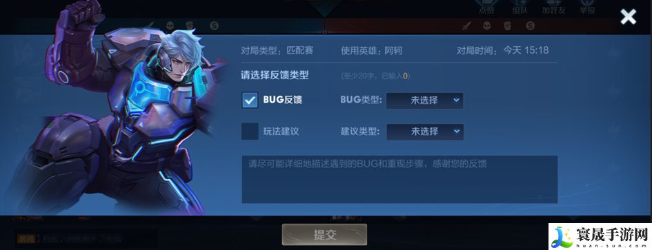 反馈功能优化为了更好地收集玩家对于不同玩法模式的满意度和建议,营造良好的玩法体验,我们优化了BUG反馈流程,同时新增了问卷反馈功能。 体验反馈功能优化设置与对局结算界面的BUG反馈改为体验反馈,调整后玩家可以根据类型选择反馈游戏过程中遇到的BUG,也可以对当前玩法提出建议。