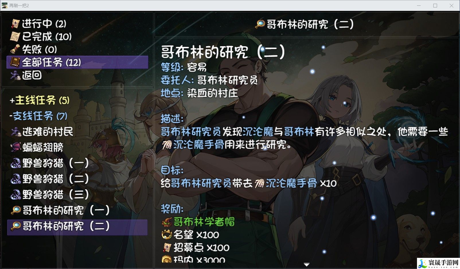 1.哥布林的研究与学者对话,接受一阶段任务,给他我们在第一层刷到的10个哥布林手骨。