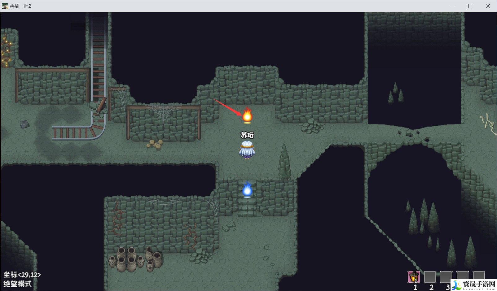 进入本层的副本,来到图二所示地,与红色火团战斗