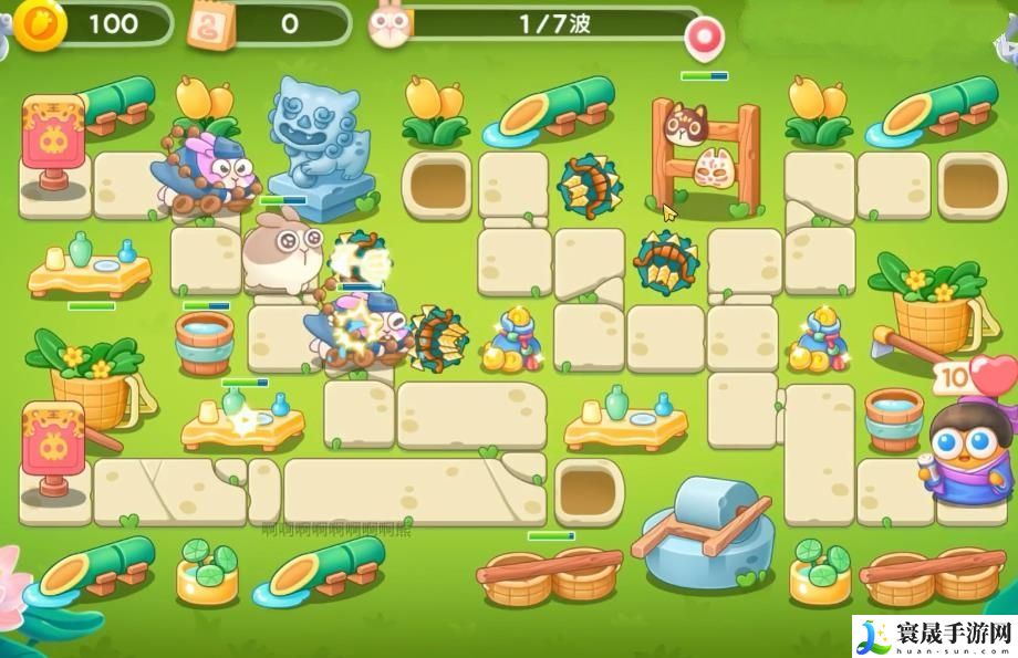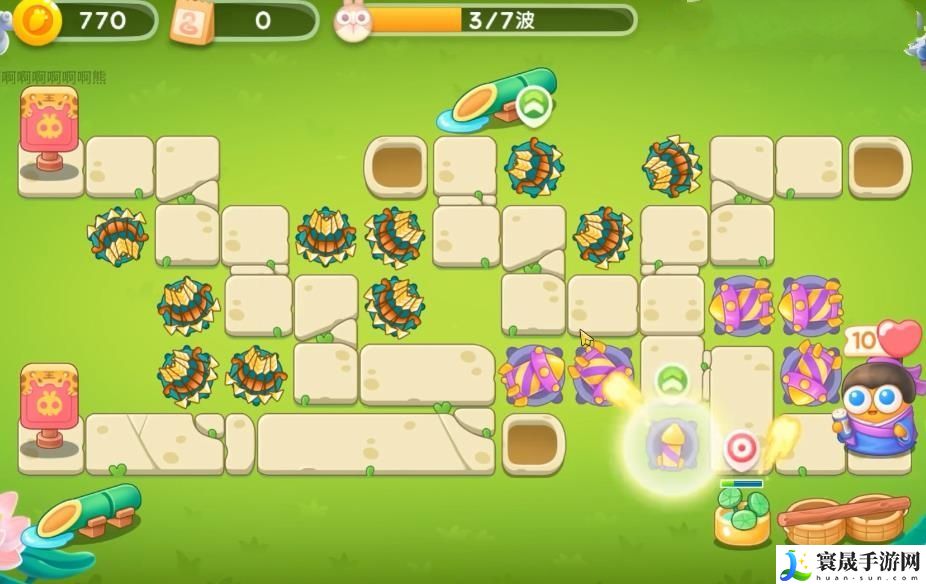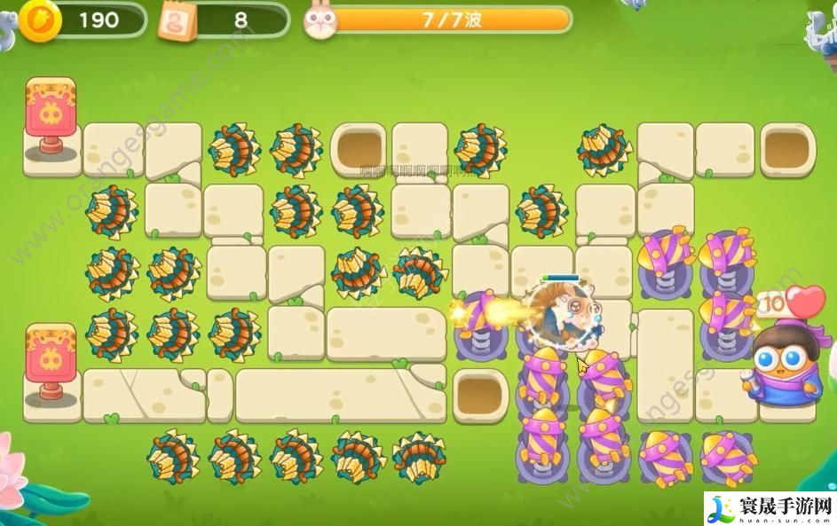 3、再清理右边的障碍并再右边萝卜的附近放几个**,防止会飞的怪物。