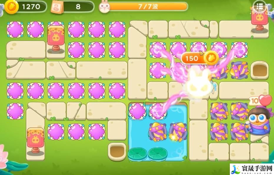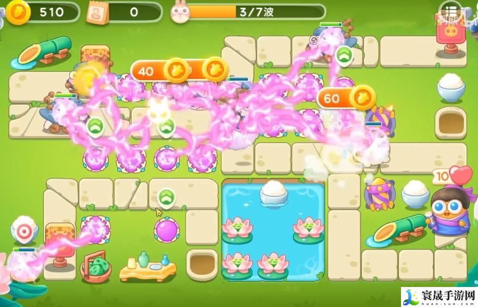 保卫萝卜4夏日垂钓第7关我们可以使用魔法球来单通,用魔法球打这一关会比较稳定,开局开图思路是先打开左边部分道具作为防守,然后打钱袋买塔,然后再向下方和左边发展,下面我们一起来看看第七关的具体通关布局吧!