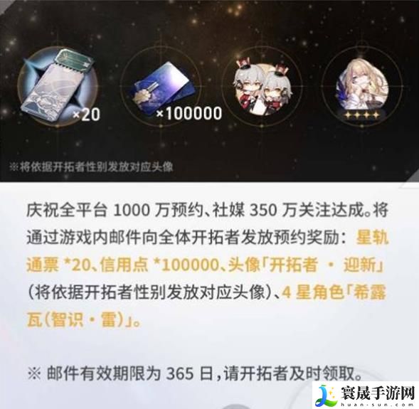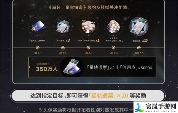 全部的预约奖励合计是20张【星轨通票】、4星角色【希露瓦】、头像【开拓者迎新】、信用点10W。