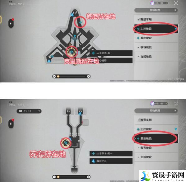 4、根据任务指引,去“观察”位于主控舱段的克里斯和梅厄,与位于基座舱段的乔安。
