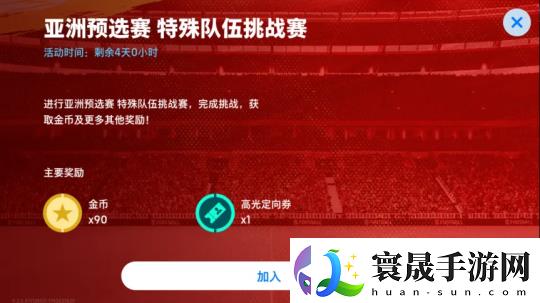 战胜【亚洲预选赛? 特殊队伍挑战赛】中的对手,你将赢得【金币】和【高光定向券】作为奖励。完成更多阶段任务,可以获得更丰厚的奖励!你需要挑战多位强敌,才能成为最终的胜者!