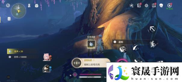2、之后跟随任务的指引爬到榕树根上,在这里对话即可完成任务,同时获取成就【榕树上的弯月亮】。