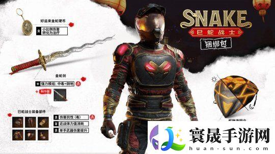 玩家可通过漫游者哨站兑换全新蛇年奖励“巳蛇战士捆绑包”,内含巳蛇战士套装、金蛇剑、好运来金蛇硬币、巳蛇战士装备部件。此前的新年物品“月兔面具”“祖龙之刃”等也返场,可用代币兑换。