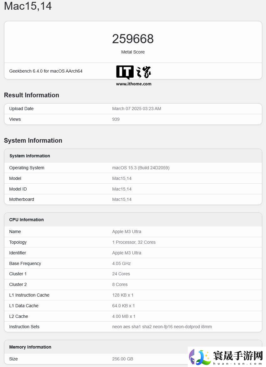 更多- 苹果最强芯片 M3 Ultra 图形跑分首曝,比 M2 Ultra 提升 16%