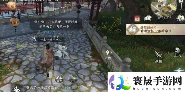 1、首先先来到汴京找到江火看他打拳并对话,从中得知他想要更好的锻炼拳法;