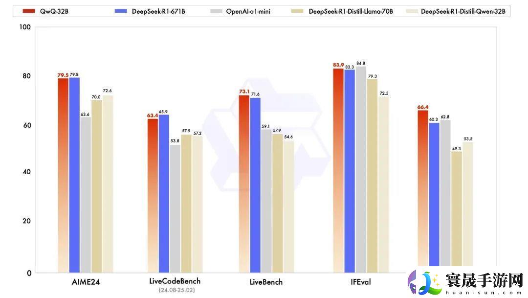 在测试数学能力的 AIME24 评测集上,以及评估代码能力的 LiveCodeBench 中,千问 QwQ-32B 表现与 DeepSeek-R1 相当,远胜于 o1-mini 及相同尺寸的 R1 蒸馏模型;在由 Meta 首席科学家杨立昆领衔的“最难 LLMs 评测榜” LiveBench、谷歌等提出的指令遵循能力 IFEval 评测集、由加州大学伯克利分校等提出的评估准确调用函数或工具方面的 BFCL 测试中,千问 QwQ-32B 的得分均超越了 DeepSeek- R1。