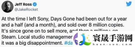 但这款游戏的市场表现却相当不错,2022年主机版就已经卖出了800万份。后续登陆PC端后,仅在Steam平台就又售出了100万份。综合起来全平台销量,已经达到了千万级别。(消息来源于《往日不再》前游戏总监Jeff Ross)