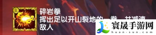 1)碎岩拳:挥出足以开山裂利的一拳并减速敌人,可以造成大量的伤害并且减速敌人,可以让玩家有充分的时间去和怪物拉开距离,进行输出。