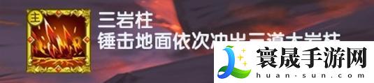 3)三岩柱:锤击地面啊,依次冲出三道大岩柱,这个技能就显得上海不俗了,主攻击的一个技能。