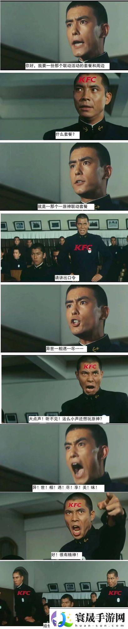 最近原神这款游戏和肯德基有一个联动活动,在这个活动中小伙伴们只需要在购买原神联动套餐,并对服务员说出神秘的暗号“异世相遇,尽享美味”就可以获得限定的联动徽章。
