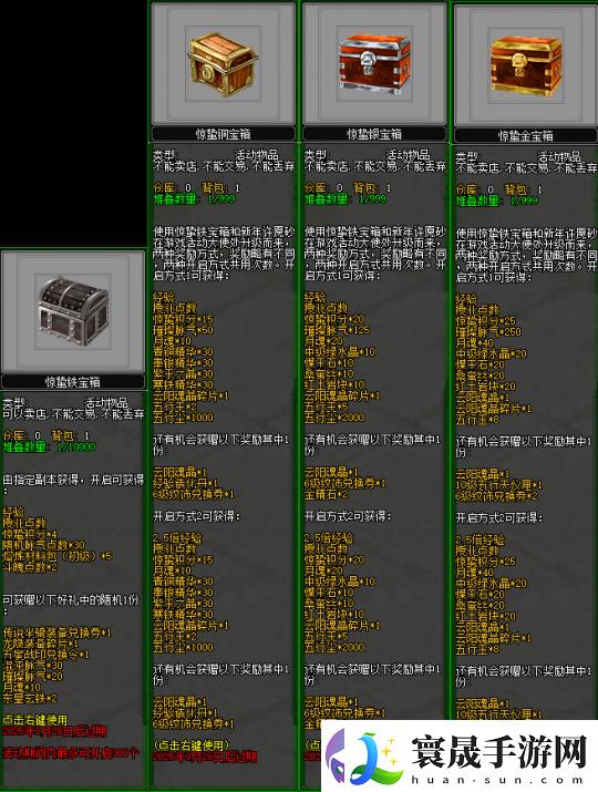 活动期间,大侠参与游戏副本即可额外获得【惊蛰铁宝箱】,使用新年许愿砂还能升级为更高级的宝箱!开启不同宝箱,就能收获各种惊喜好礼!