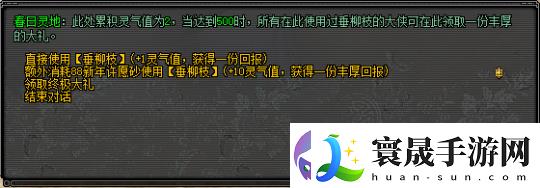 春天最适合踏青啦!大侠们可以前往28个春日灵地,种下垂柳枝,待它长成有灵性的柳树,所有在此地种植过的大侠都能领取一份终极大礼!