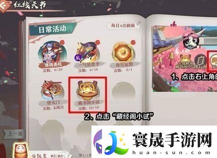 活动入口:点击右上角的【天书】,然后在红线天书的“日常活动”中,找到【藏经阁小试】。