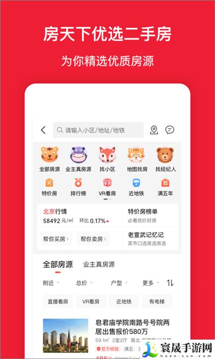 1、房源搜索与定位:用户可以通过精准定位查找附近的新房、二手房、地铁房、折扣房、商业地产等信息。