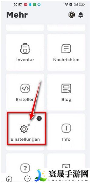 3、什么都不用看,直接往下拉,看到一个齿轮图标(Einstellungen)点击下,这个是设置选项;