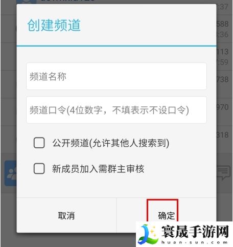 2、在该页面中用户设置频道名称和口令,就可以创建了。
