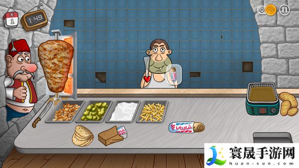 最后攒5万金币的时候,按照顾客要求的配料来,不熟练的话很浪费时间,沙威玛里面都是需要烤肉的,可以所有都只加烤肉,这样节省出来的时间,比按照顾客放配料的金币多很多,大概一局可以到4500