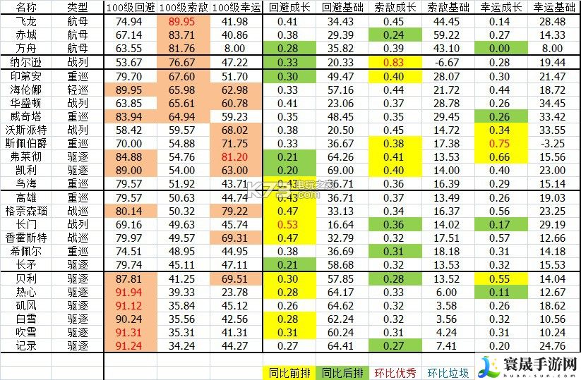 [威奇塔]100级因为基础值较高,回避也超越了[鸟海]跟[高雄],婚也行,成长不低