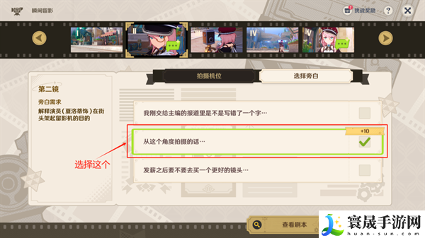 ◇ 第一镜拍摄机位:选择最左边的图片。