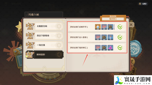 ◆ 评价达到「鬼斧神工」可获得20剧戏票券+30逸趣映片+6个精锻用魔矿。