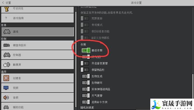 1、玩家需要进入设置页面,在这里激活作弊按钮。