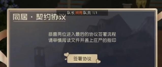 3、签署协议:双方的这个好友度在达到100后,并且都升到了七级庄园,那么这个时候就可以进行组队同居了。同居的话来到庄园领地牌这里先签一个这个协议,协议其实就是回答问题,基本都是有些内容还是比较简单的。