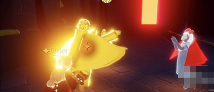 1、先来到霞谷终点处,来到迷宫的入口处,会看到一个发光的火花家长先祖。