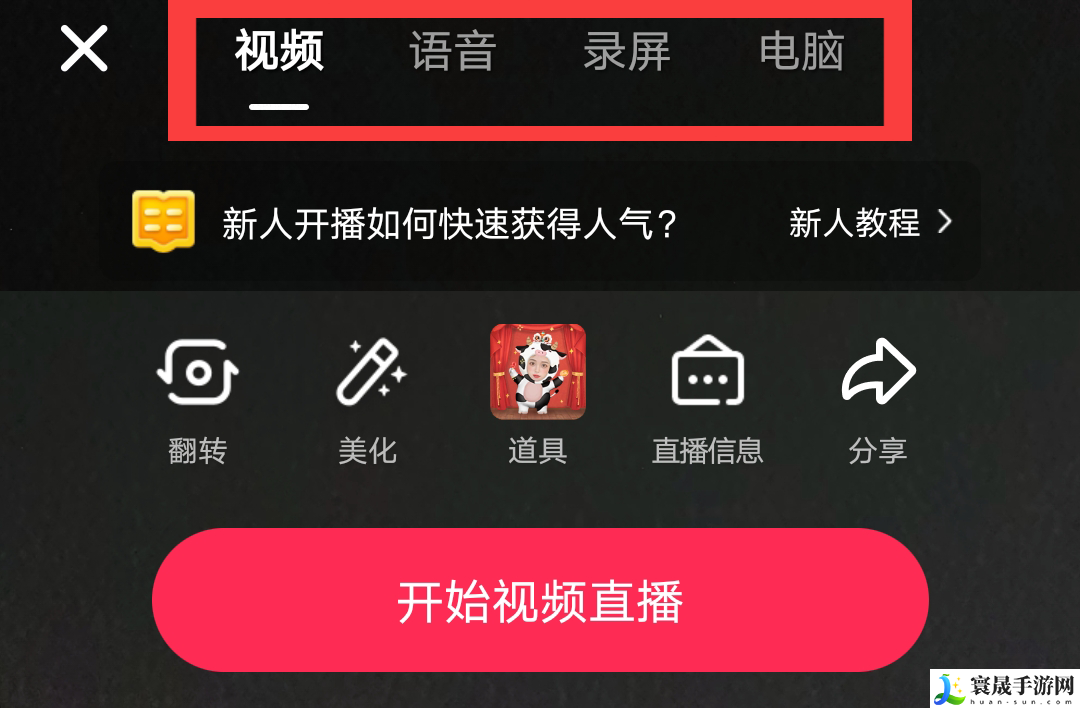 2、进入直播页面选择直播类型,点击下方的开始视频直播。