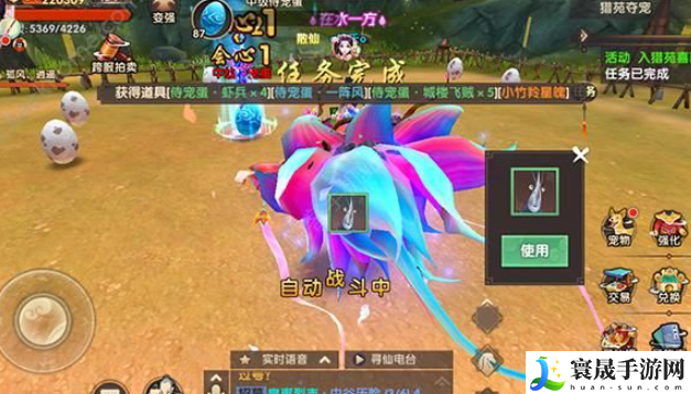 在寻仙手游中,玩家可使用各种道具、宠物坐骑等,提升自己在战斗中的伤害输出。侍宠可开启自动寻路,也可以在摆摊时自动喊话吸引其他玩家购买。通过学习各种技能,增加玩家