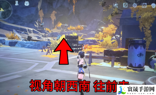 3、传送过来后,将视角朝西南方向转动,然后往前走;