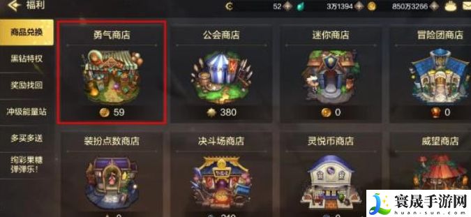 2、在福利页面找到【商品兑换】中的勇气商店,点击进入。